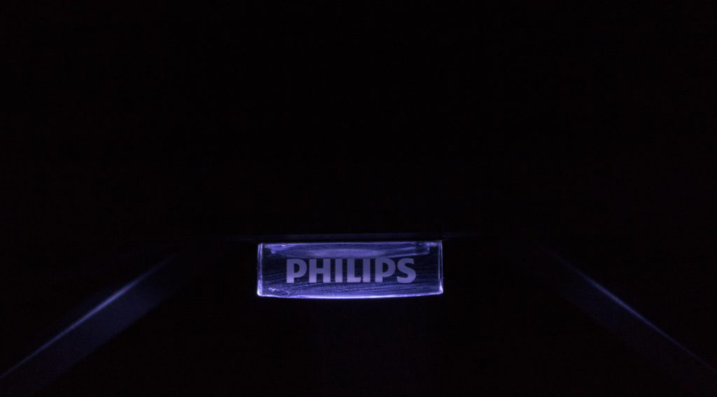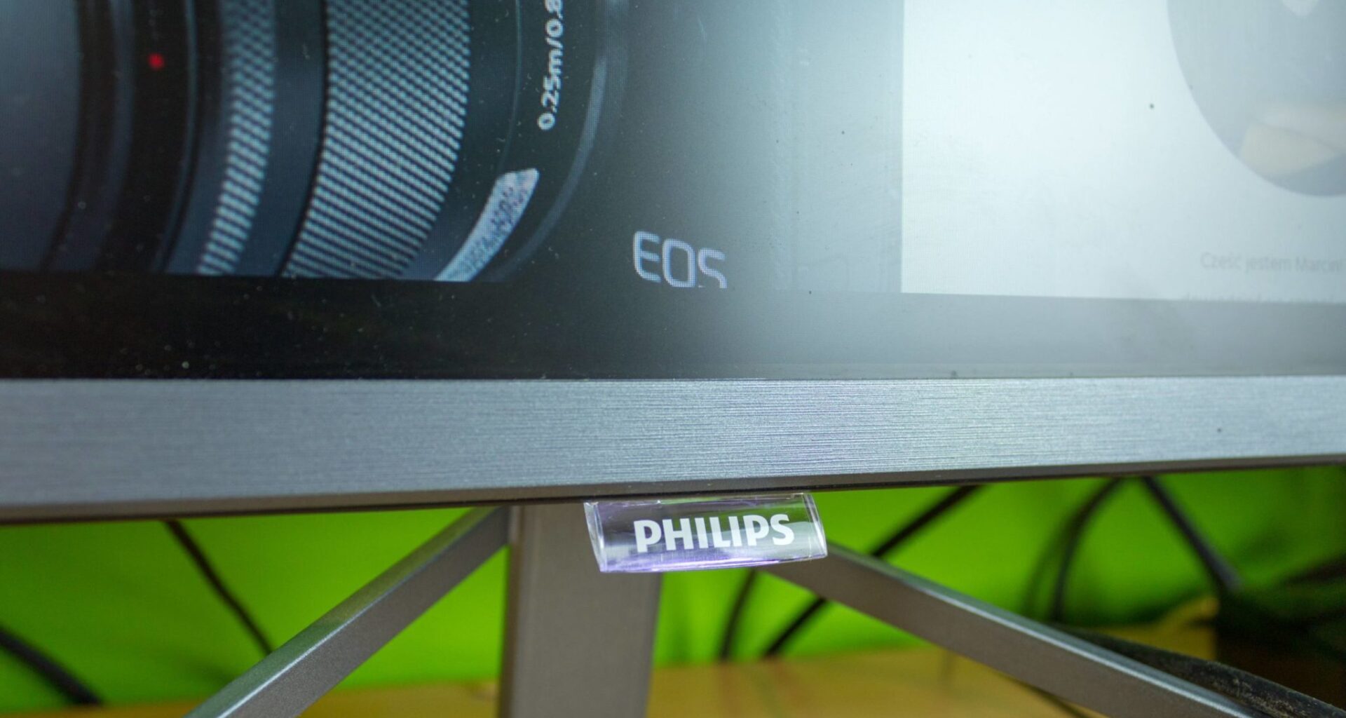 Jego wykonanie jest bardzo dobre. Stopka została wykonana z jakiegoś rodzaju metalu (niestety, nie udało mi się odszukać odpowiedniej informacji), co zaliczam na plus. Pozostałe komponenty to bardzo dobry plastik, do którego nie mogę się przyczepić. Bardzo spodobało mnie się rozwiązanie podświetlanego napisu Philips, który również działa jako dioda przedstawiająca o działaniu monitora.