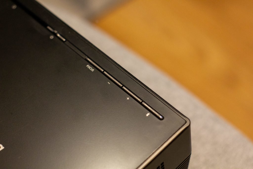 Zatem jak jest z ogólnym działaniem? Otóż bardzo dobrze. Dzięki temu projektorowi obejrzałem naprawdę sporo filmów, seriali i innego typu materiałów. Muszę przyznać, że podczas tego nie miałem z nim żadnych problemów. Dzięki funkcji smart wystarczyły podłączyć go do domowej sieci Wi-Fi przy pomocy wbudowanego modułu i już można było oglądać wszelakie treści, które oferują usługi streamingowe i nie tylko. Jeżeli chodzi o funkcję automatycznego dopasowywania ostrości, to była ona niezawodna i bez problemu ustawiała odpowiednią ostrość, którą de facto można było skorygować pilotem.