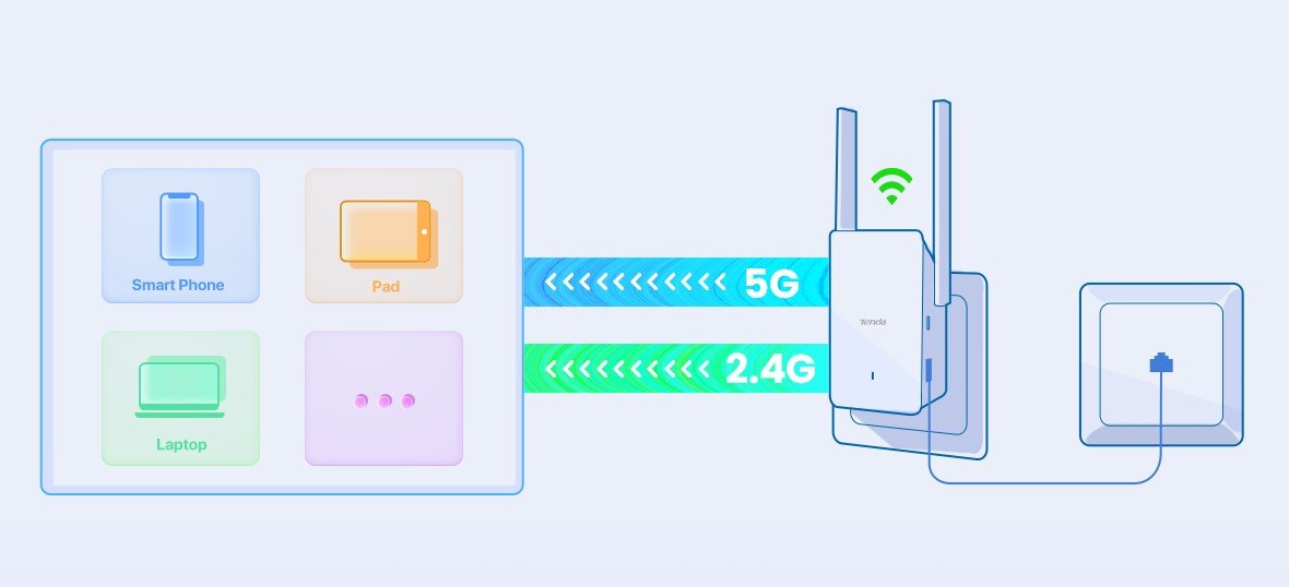 A27 to extender Wi-Fi 6 przeznaczony do dużych domów. Dzięki prędkości bezprzewodowej do 1201 Mb/s w paśmie 5 GHz i do 574 Mb/s w 2,4 GHz, znacznie zwiększa prędkość Wi-Fi w porównaniu ze wzmacniaczami Wi-Fi 5.