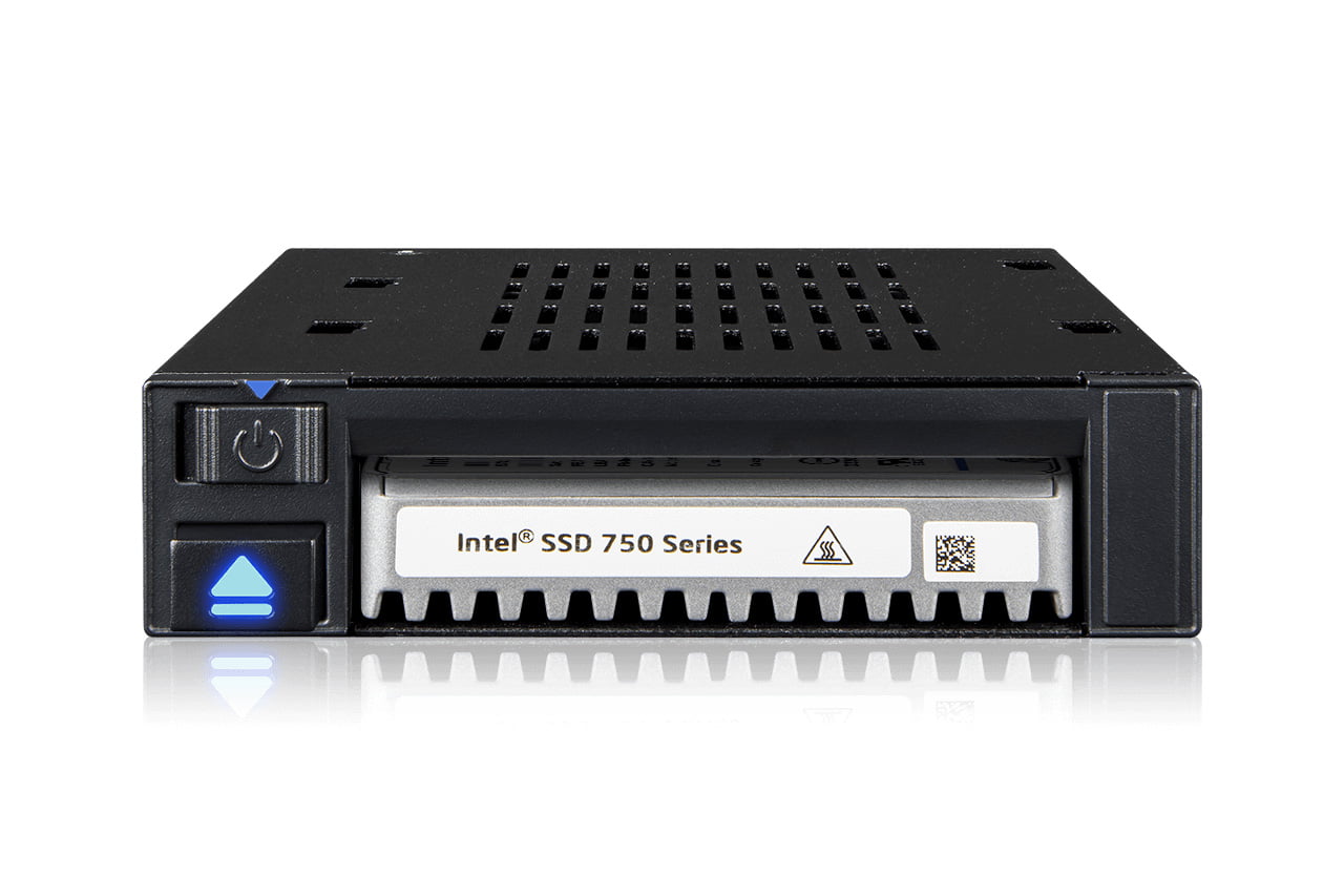 Otwarta konstrukcja MB021VP-B umożliwia błyskawiczną podmianę nośników U.2 NVMe SSD. Po zainstalowaniu dysku w zatoce zewnętrzny przycisk wysuwa się, a znajdująca się na nim kontrolka LED zapala się informując o jego gotowości do użycia.