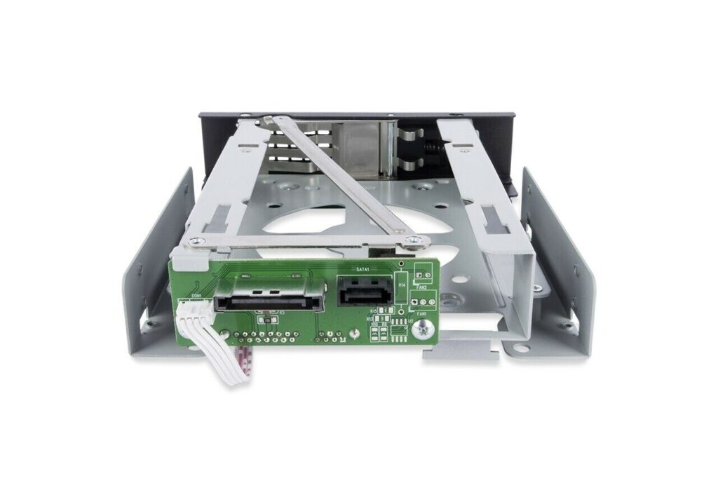TurboSwap MB171SP-1B posiada dodatkowe otworzy montażowe umożliwiające instalację wentylatora 80mm. Wystarczy przykręcić go do obudowy oraz podłączyć zasilanie.