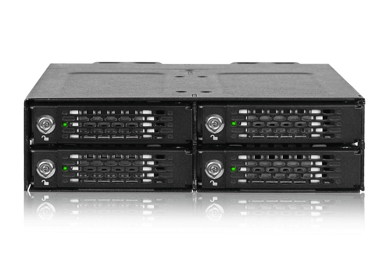 ToughArmor MB720MK-B V2 to wytrzymała, czterozatokowa stacja dokująca dla dysków M.2 PCIe 4.0 NVMe SSD mieszcząca się w pojedynczym slocie 5,25″. Dzięki wykorzystaniu złącza SFF-8612 oferuje transfery sięgające 64 Gb/s, zaś zastosowanie specjalnych tacek przyspiesza i ułatwia wymianę nośników. Celem zapewnienia optymalnych temperatur pracy MB720MK-B V2 wyposażony został w podwójny układ aktywnego chłodzenia oraz termopady zamocowane w kieszeniach dyskowych. Jako produkt z serii ToughArmor MB720MK-B V2 cechuje się wzmocnioną, metalową konstrukcją.