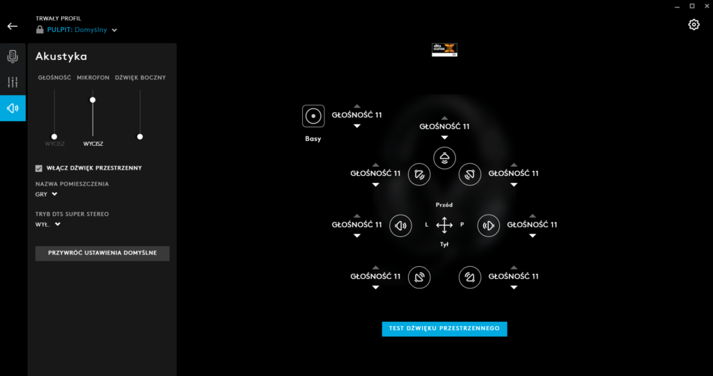 Ostatnia zakładka pozwala nam na zabawę dźwiękiem przestrzennym. Najważniejsze w niej jest to, że jest bardzo intuicyjna.