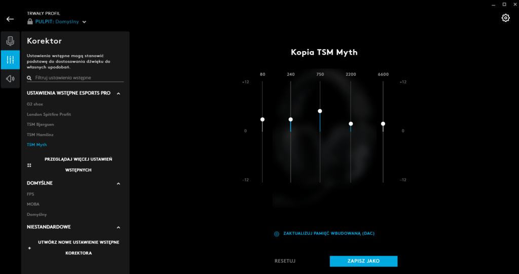 Ta zakładka to wszystkim dobrze znany equalizer. Po zalogowaniu otrzymujemy dostęp do presetów przygotowanych przez innych użytkowników (niektóre z nich są naprawdę świetne).