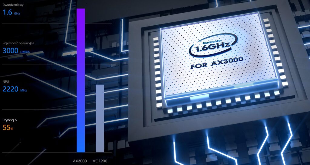 Zastosowanie dwurdzeniowego procesora 1,6 GHz osiągającego do 3000 DMIPS pozwala na sprawniejsze zarządzanie ruchem sieciowym, co przekłada się na wyższą wydajność odczuwalną przez użytkownika.