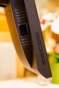 Większa część tego monitora została wykonana z dobrej jakości plastiku. Podczas trwania testu nie napotkałem z nim żadnych problemów. Nie ukrywajmy – jest to monitor, którego cena nie jest wygórowana, więc nie wyczekujmy, nie wiadomo czego, dlatego uważam, że wykonanie tego modelu jest adekwatne do jego kwoty. Jedyny element, który został wykonany z innego materiału, jest to ramię łączące podstawę z samym ekranem. Warto zaznaczyć, że jest to również szyna, ponieważ model ten posiada możliwość regulowania wysokości. Co za tym idzie do naszej dyspozycji mamy opcję Pivot, z której osobiście nie korzystałem. Bardzo przydanym dodatkiem są dwa dodatkowe elementy, które pozwalają nam spiąć kable, aby łatwiej byłoby nam je ułożyć.